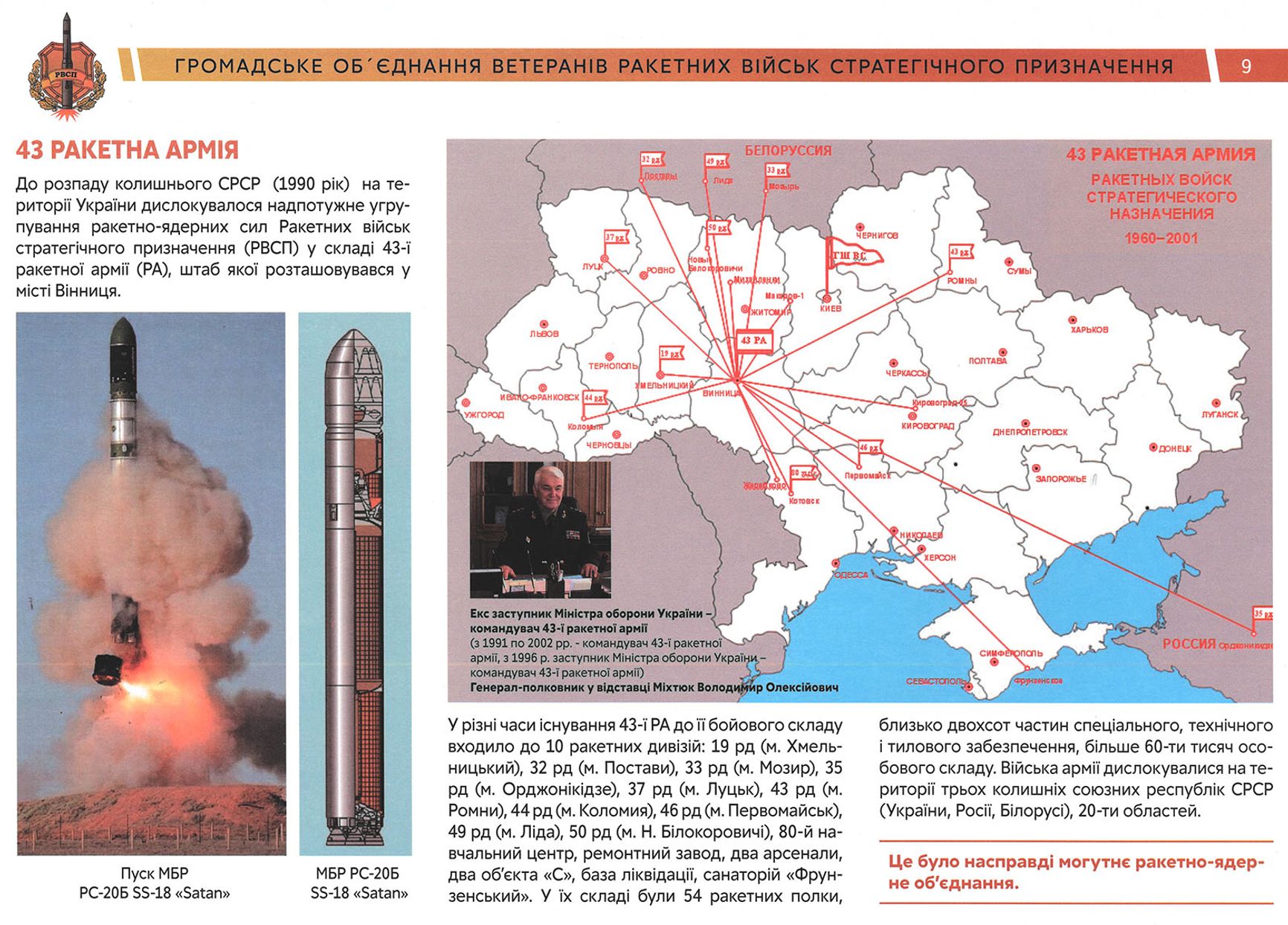 Украина получила основную часть инфраструктуры и имущества советской 43-й ракетной армии со штабом в Виннице, в которую входило (в разное время) до 10 ракетных дивизий, 54 ракетных полка, около 200 частей специального, технического и тылового обеспечения. Общая численность военнослужащих соединения достигала 60 000 человек.