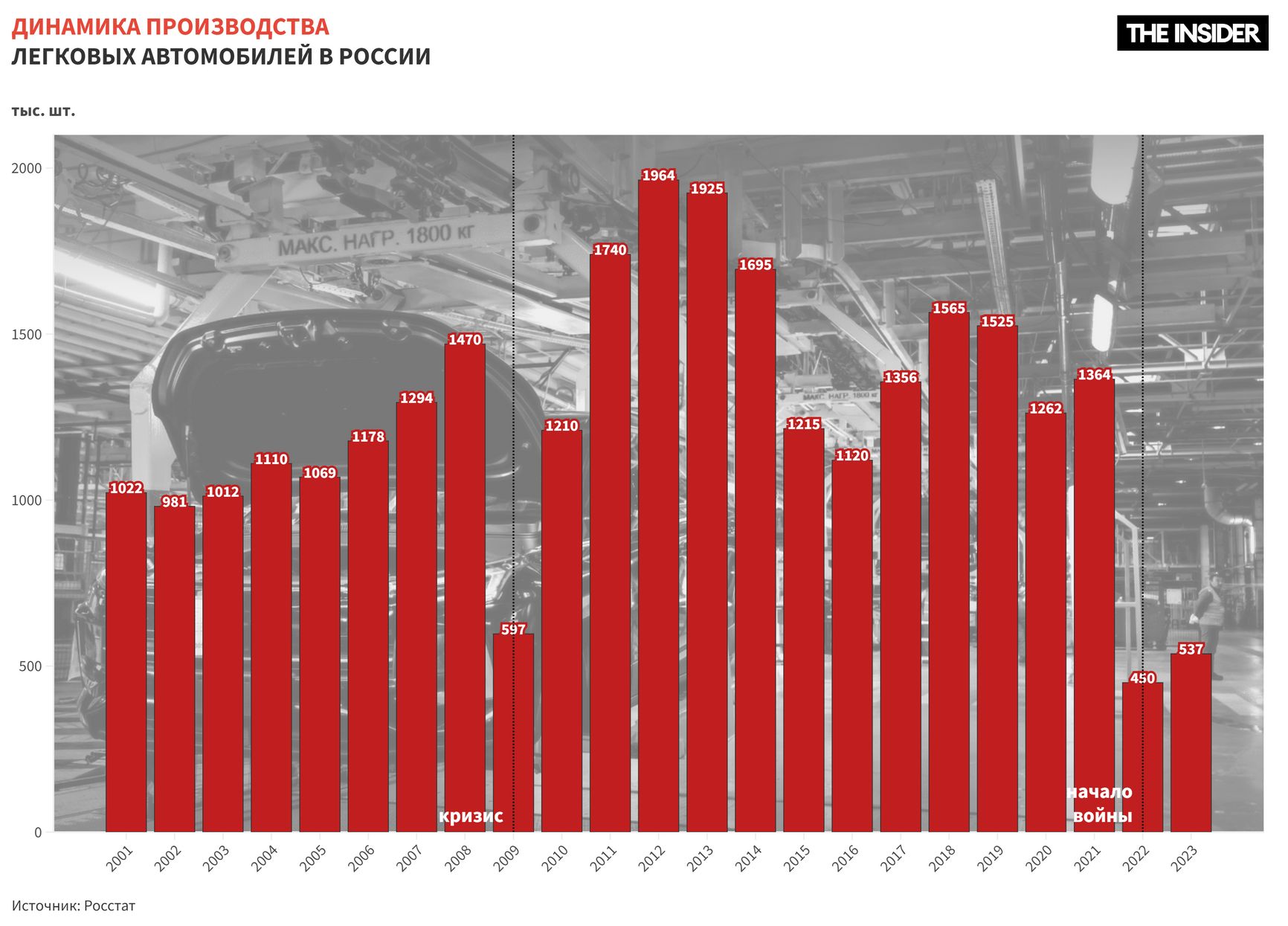 В тот год в России произвели всего 450 тысяч легковых автомобилей — обвал почти на 70% в сравнении с предыдущим годом. Продажи новых легковых автомобилей рухнули почти на 60%.