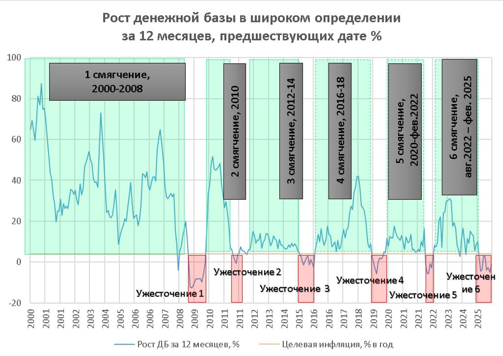 В довоенное время жесткая политика тоже встречалась нечасто: с марта по октябрь 2019 года, с марта 2015 года до начала 2016 года, летом 2011 года и с декабря 2008 года по ноябрь 2009 года. И это всë! В остальное время политика была мягкой, временами темп роста базы достигал 40% в год.