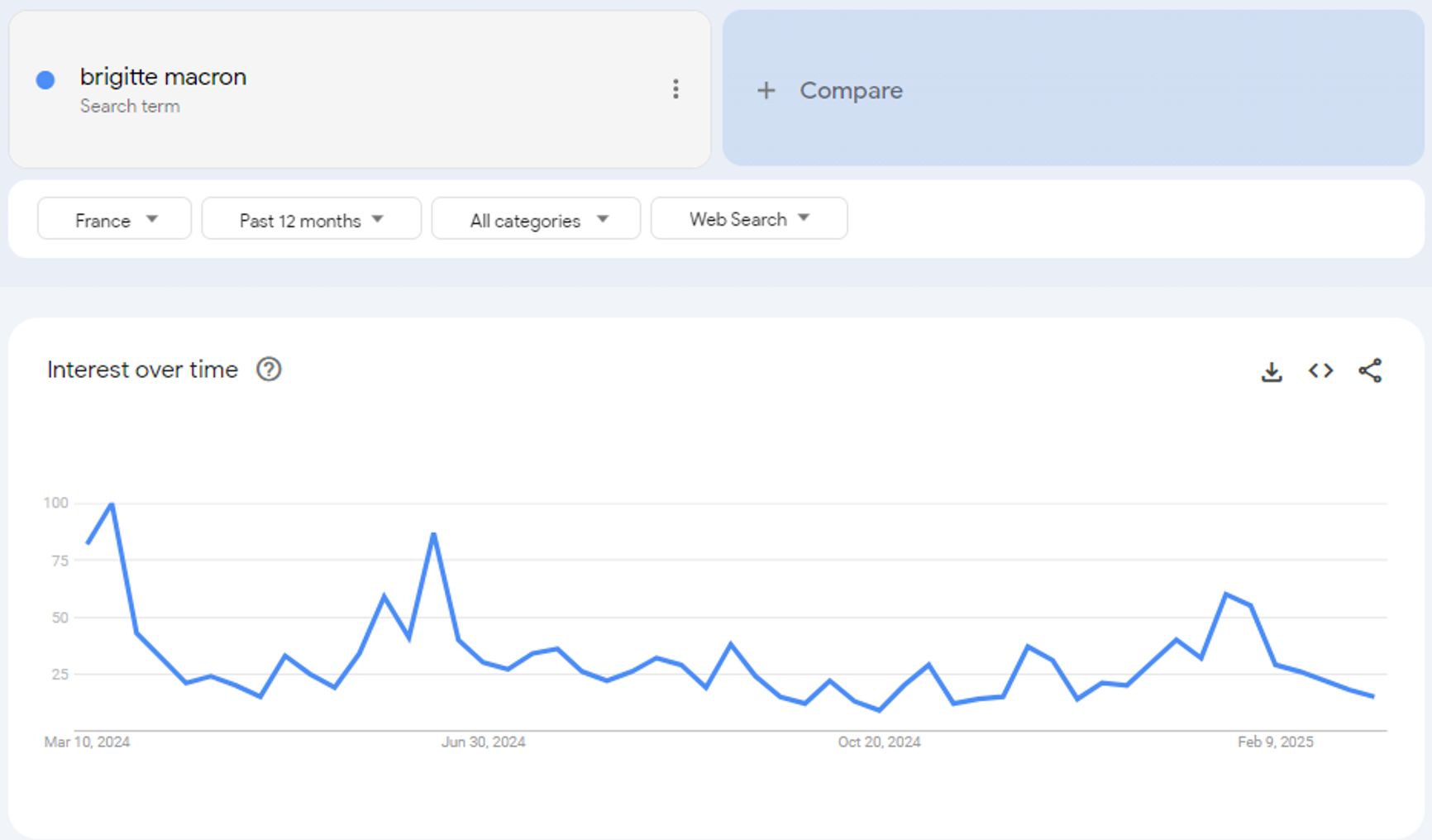 And these are the statistics for the query “brigitte macron jean michel trogneux.”