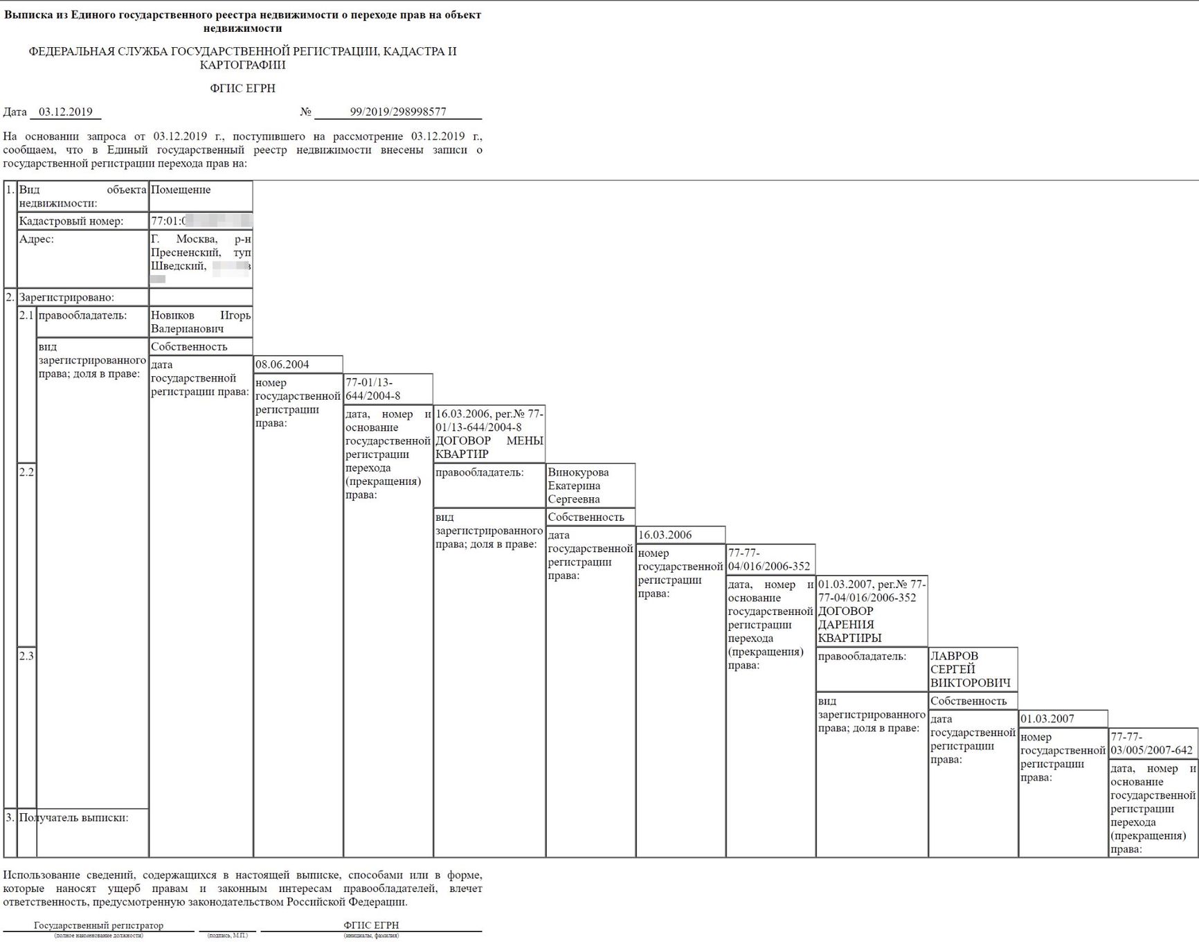 Officially, Lavrov's daughter received the apartment under a swap agreement with a certain Igor Valerianovich Novikov, who at the time was a security guard at the Soglasiye-SB private security company. Since then, the life of the private security guard has improved and now he is the general director of two companies: Svoboda CJSC and Soglasie-Innovative Technologies. The latter is owned by Vardan Khachatryan, a businessman engaged in hotel business. The Insider plans to write about Lavrov's links to hotel business in a future investigation.