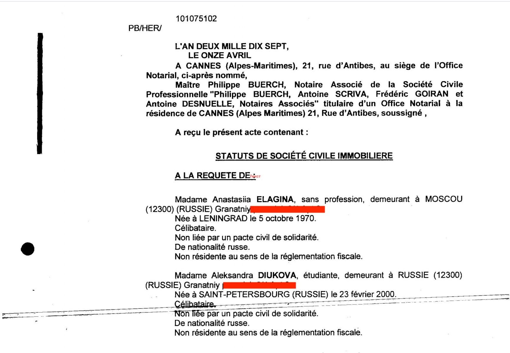At the time of the purchase, Sasha had no money of her own, and her mother, Anastasia Elagina, had no income whatsoever. Although Elagina was named as Valexa’s director and junior partner, the founding documents of the French company state that Elagina has no profession. In the past, Elagina worked as a mathematics teacher in a St. Petersburg school, but she is now a homemaker — albeit one who was granted an initial 40% stake in the company she nominally heads.