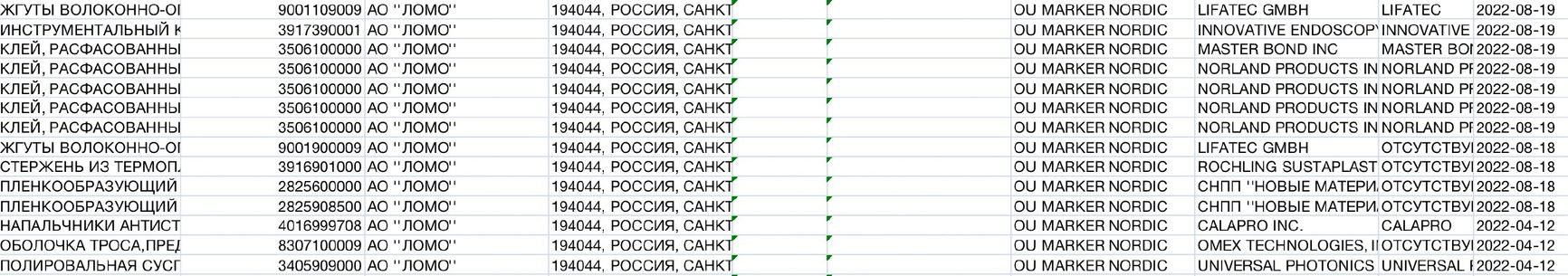 Lomo’s European supplier is the Estonian Marker Nordic Ou. The Tallinn-based firm has supplied the Russian defense contractor with fiber optic harnesses, industrial adhesives, and other goods.