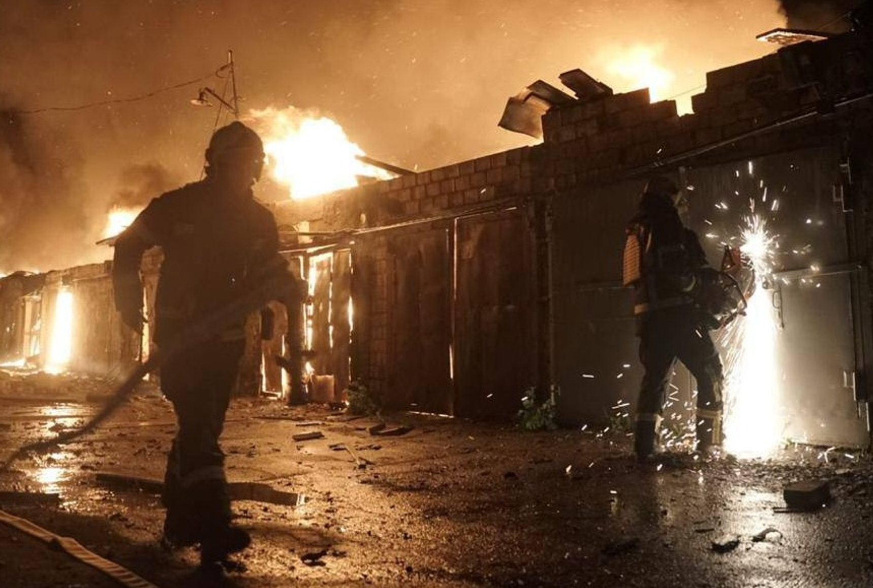 Ukrainian emergency workers respond to the aftermath of Russia's massive overnight assault on Kyiv on April 24. Photo: State Emergency Service of Ukraine