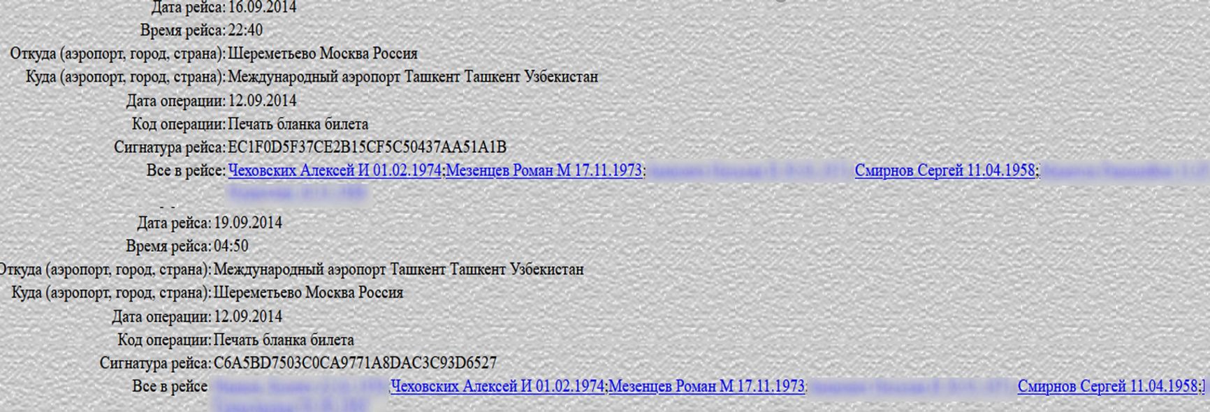 Roman Mezentsev is the highest-ranking FSB officer of those who traveled with the team of poisoners after their victims. The analysis of his phone calls, received by Bellingcat from two unconnected sources, as well as his flight data show that Mezentsev communicated daily and frequently traveled with Alexey Zhalo, the head of the Second Service Directorate, as well as with other high-ranking FSB and government officials. For example, in September 2014, he flew to Uzbekistan together with two of FSB Director Alexander Bortnikov's closest deputies, namely General Sergei Smirnov and General Alexei Chekhovskikh. Sergey Smirnov was Bortnikov's first deputy and oversaw the Second Service until his retirement in October 2020.