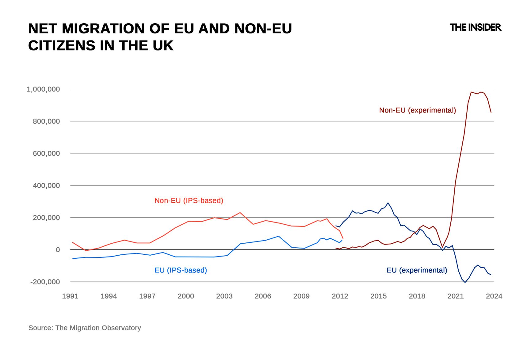 The UK's Brexit, also largely driven by anti-immigration sentiment, failed to reduce the number of immigrants either. On the contrary, before the vote to leave the EU in 2016, the inflow of EU migrants to Britain exceeded 300,000 people, and another 80,000 were arriving from outside the EU. In 2024, 95,000 EU citizens left the UK, but more than 950,000 people arrived from outside the EU (and the number of Brexit supporters has since fallen to 30%).