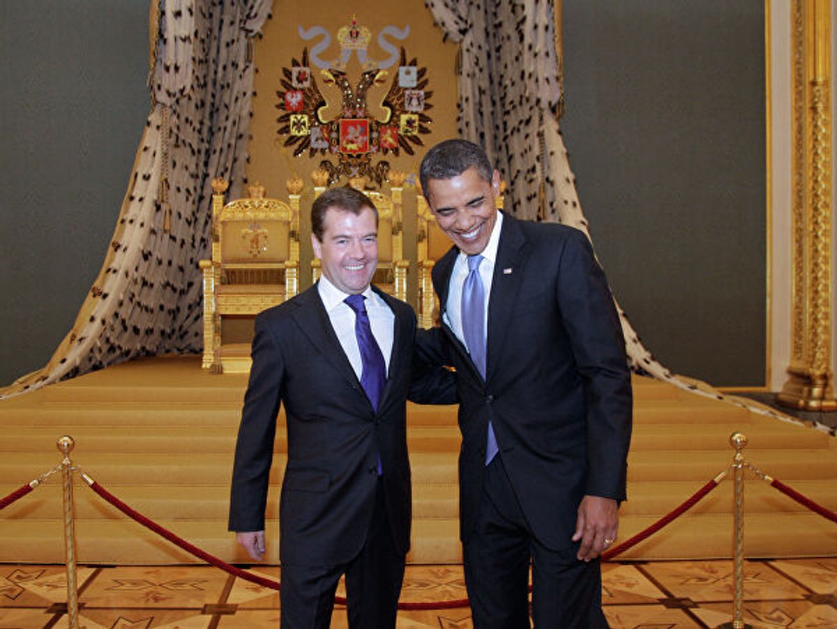 Моя официальная встреча с Медведевым проходила в довольно впечатляющей обстановке: один из дворцов кремлевского комплекса с высокими позолоченными потолками и тщательно продуманным интерьером воссоздавали былое царское величие. Наш разговор был сердечным и профессиональным. На совместной пресс-конференции мы эффективно урегулировали продолжающиеся трения вокруг Грузии и противоракетной обороны. У нас было много «результатов», о которых нужно было объявить, включая согласованную структуру переговоров по новому договору о стратегических вооружениях, согласно которому обеим сторонам необходимо было уменьшить на треть допустимое количество ядерных боеголовок и средств доставки. Гиббса <Роберт Гиббс – пресс-секретарь Белого Дома в 2009-2011 годах – The Insider> больше взволновало согласие России снять ограничения с США на экспорт домашнего скота – изменение, которое принесло бы более $1 млрд доходов американским фермерам и владельцам ранчо. «Это то, что действительно волнует людей дома», - сказал он с ухмылкой.