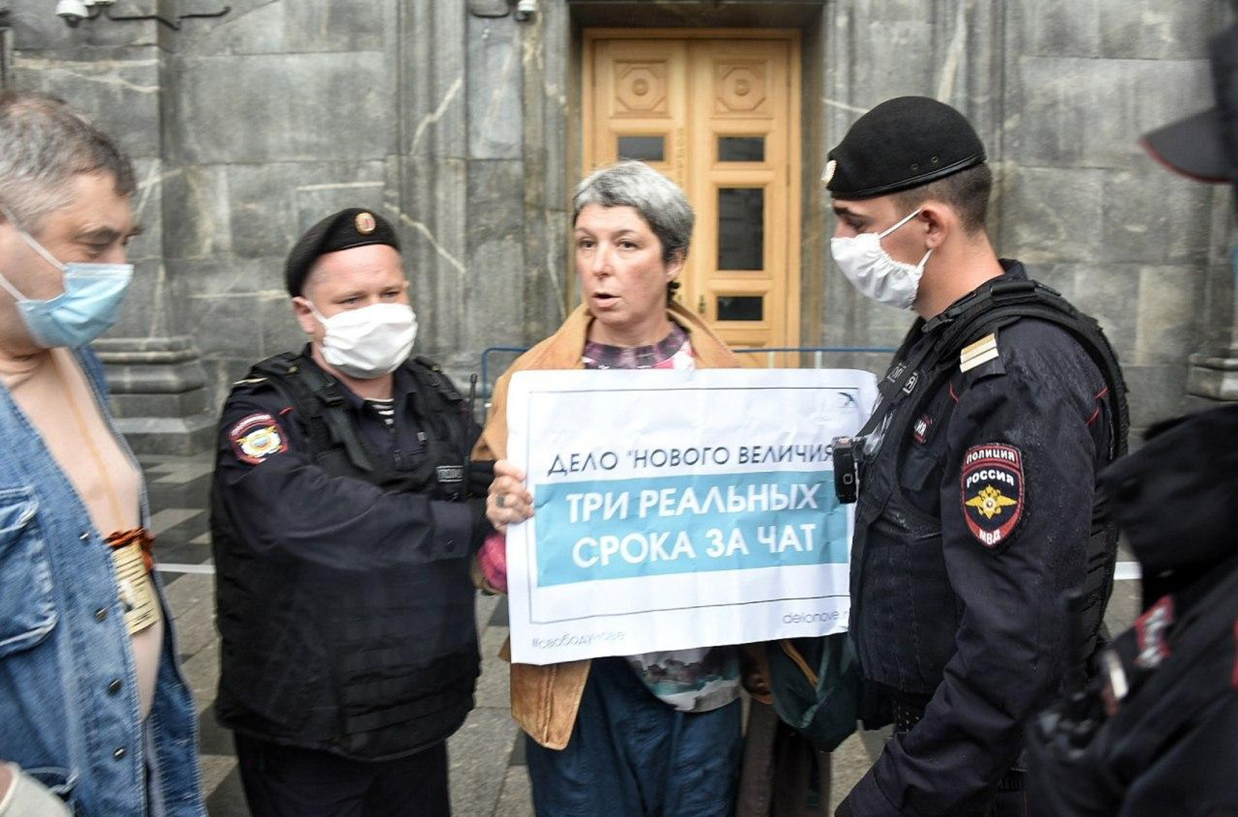 В Москве у здания ФСБ на Лубянке полиция задерживает участников одиночных пикетов в поддержку фигурантов дела «Нового величия», сообщает «Новая газета».