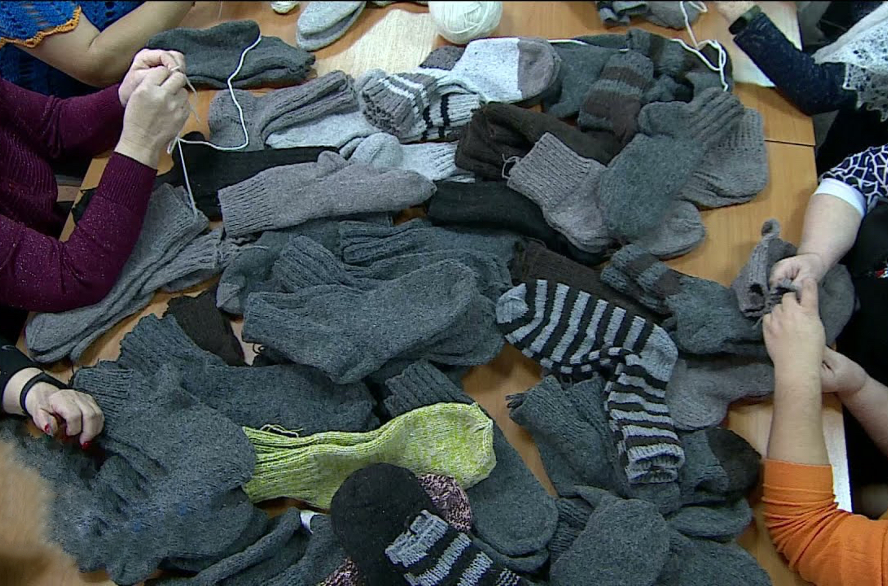 Также женщины вяжут шапки и жилетки. Регулярно в чате отчитываются о проделанной работе и затраченных средствах. По сообщениям ясно, что многим не хватает материалов: «У меня там микс. Не так много для трусов, сколько для штанов подойдет. Тканью особо не запасалась по жизни».