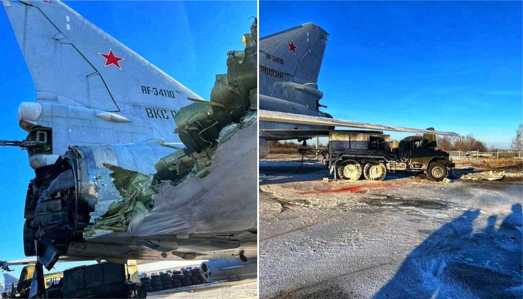 Ту-22М3 на стоянке в Дягилево до и после удара БПЛА