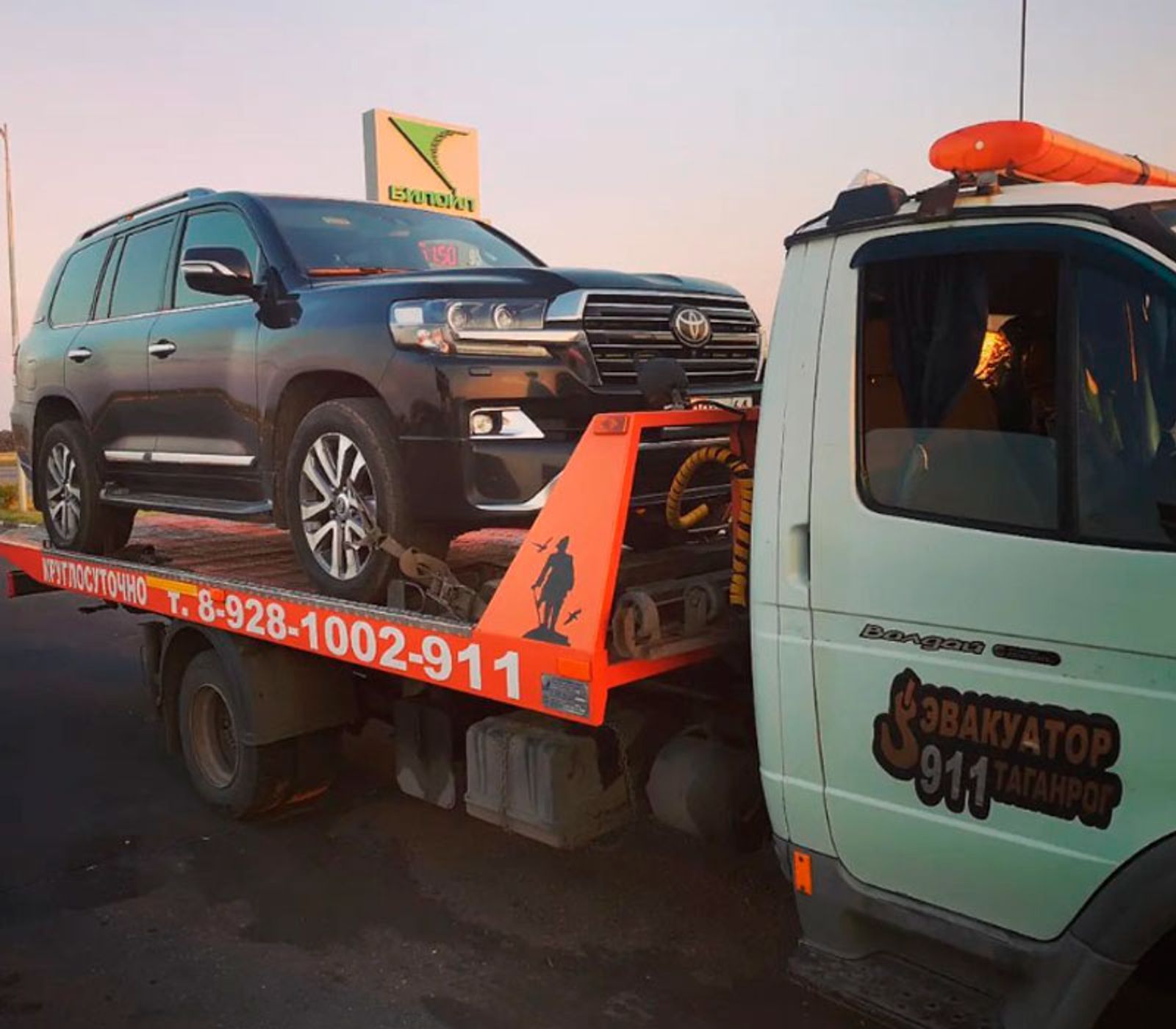 А номер, написанный на эвакуаторе, зарегистрирован в Ростовской области и предлагает услуги по эвакуации в Таганроге.