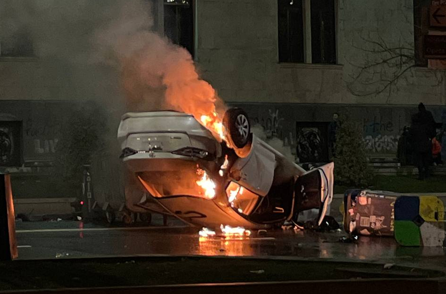 В ночь на 9 марта в центре Тбилиси продолжались столкновения протестующих против закона об «иноагентах» с полицией. Полиция применяла водометы и слезоточивый газ, а активисты бросали камни и поджигали мусорные баки. На проспекте Руставели протестующие начали строить баррикады из скамеек и других подручных средств, сообщал Telegram-канал Paper Kartuli. Судя по фото и видео, опубликованным «Радио Свобода», к утру протестующие разошлись, на месте остались сотрудники правоохранительных органов и пожарные, тушащие подожженные автомобили.