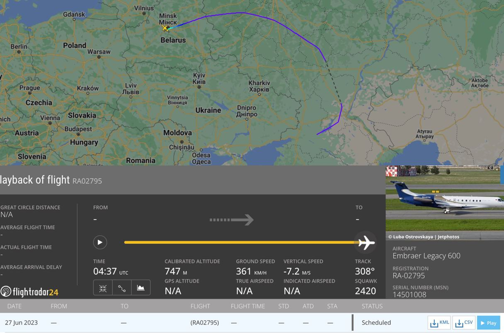 Через 18 минут еще один бизнес-джет BAe 125-800B с регистрационным номером RA-02878, вылетевший из Санкт-Петербурга, приземлился на этом же аэродроме под Минском.