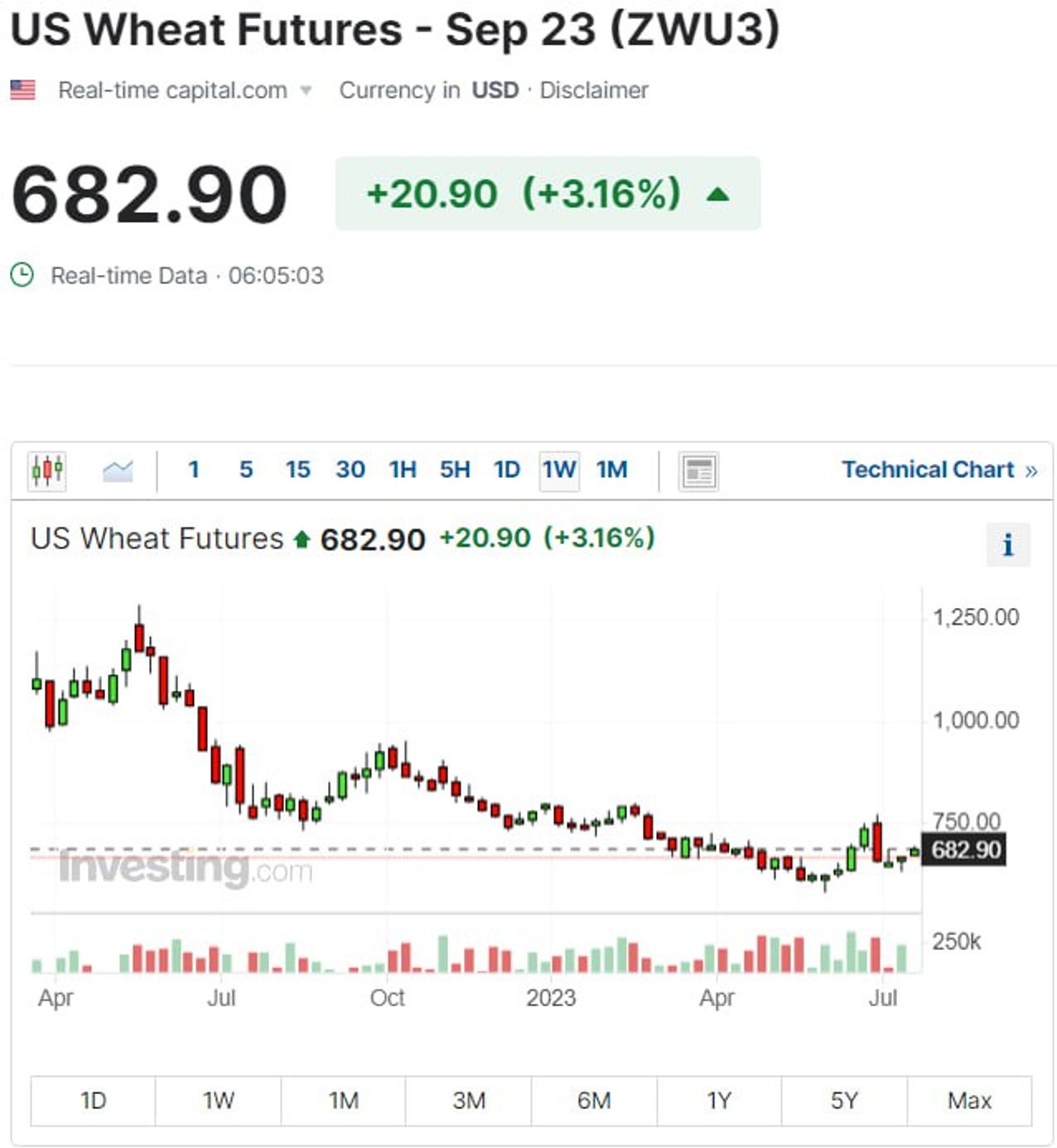 Цена пшеницы на бирже выросла на 3% после заявлений со стороны России о приостановке зерновой сделки с участием Украины, Турции и ООН, в рамках которой во время войны обеспечивается безопасный морской коридор для сельскохозяйственных грузов из Украины. На это обратил внимание РБК.