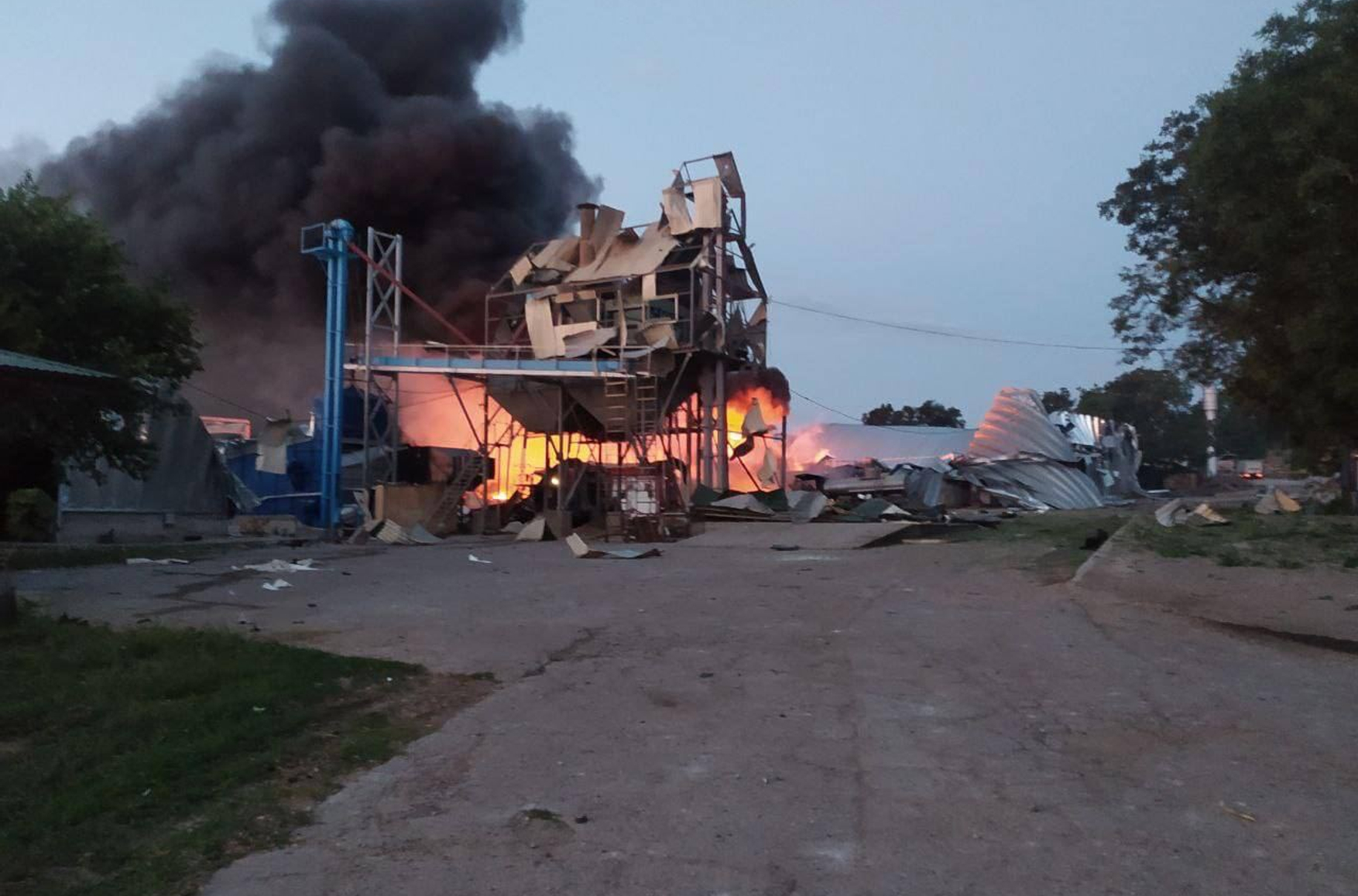 По словам Кипера, уничтожены 100 тонн гороха и 20 тонн ячменя. Кроме того, повреждена сельскохозяйственная и спасательная техника, находившаяся на территории предприятия.