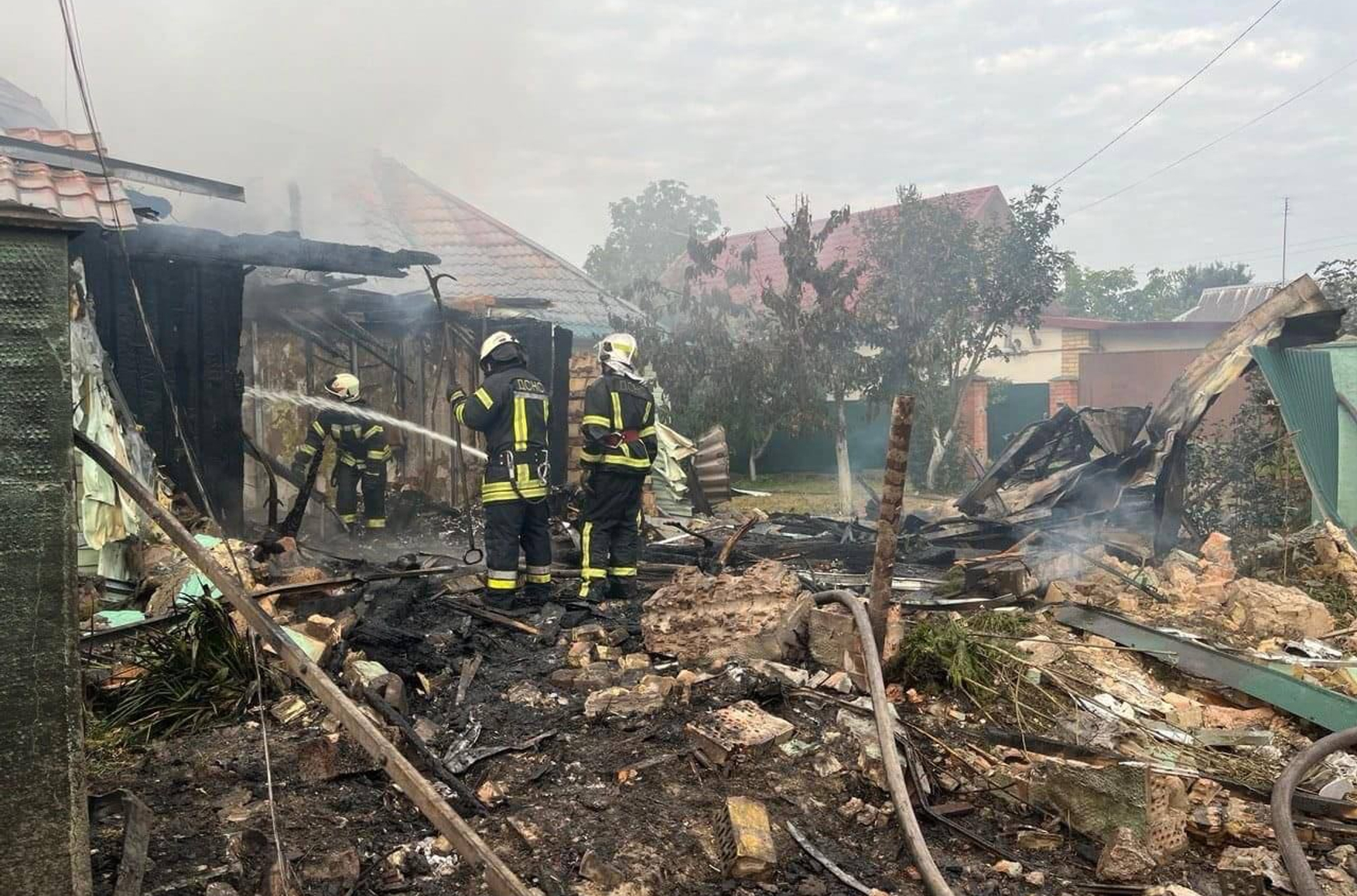 Мэр Киева Виталий Кличко также сообщил в Telegram, что в Дарницком районе обломки упали на крышу торгового помещения. По данным украинского МВД, речь идет о гипермаркете «Ашан». В Фастовском и Бучанском районах Киевской области возникли пожары и были разрушены жилые дома, сообщает ГСЧС Украины.