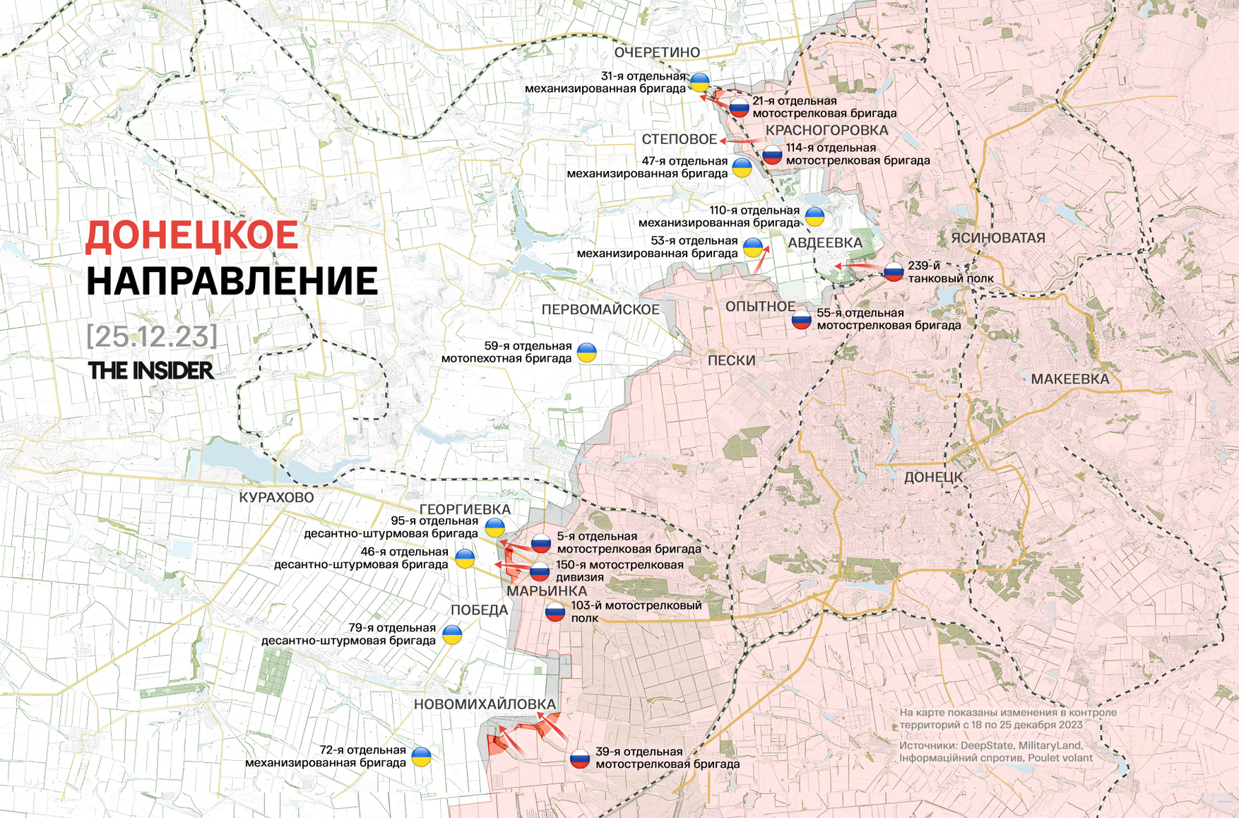 Тем временем в ВСУ утверждают, что бои за Марьинку продолжаются. «Сейчас наши военные находятся в административных границах Марьинки, но город полностью уничтожен. Говорить о полном захвате Марьинки некорректно», — заявил представитель Сил обороны Таврического направления Александр Штупун.