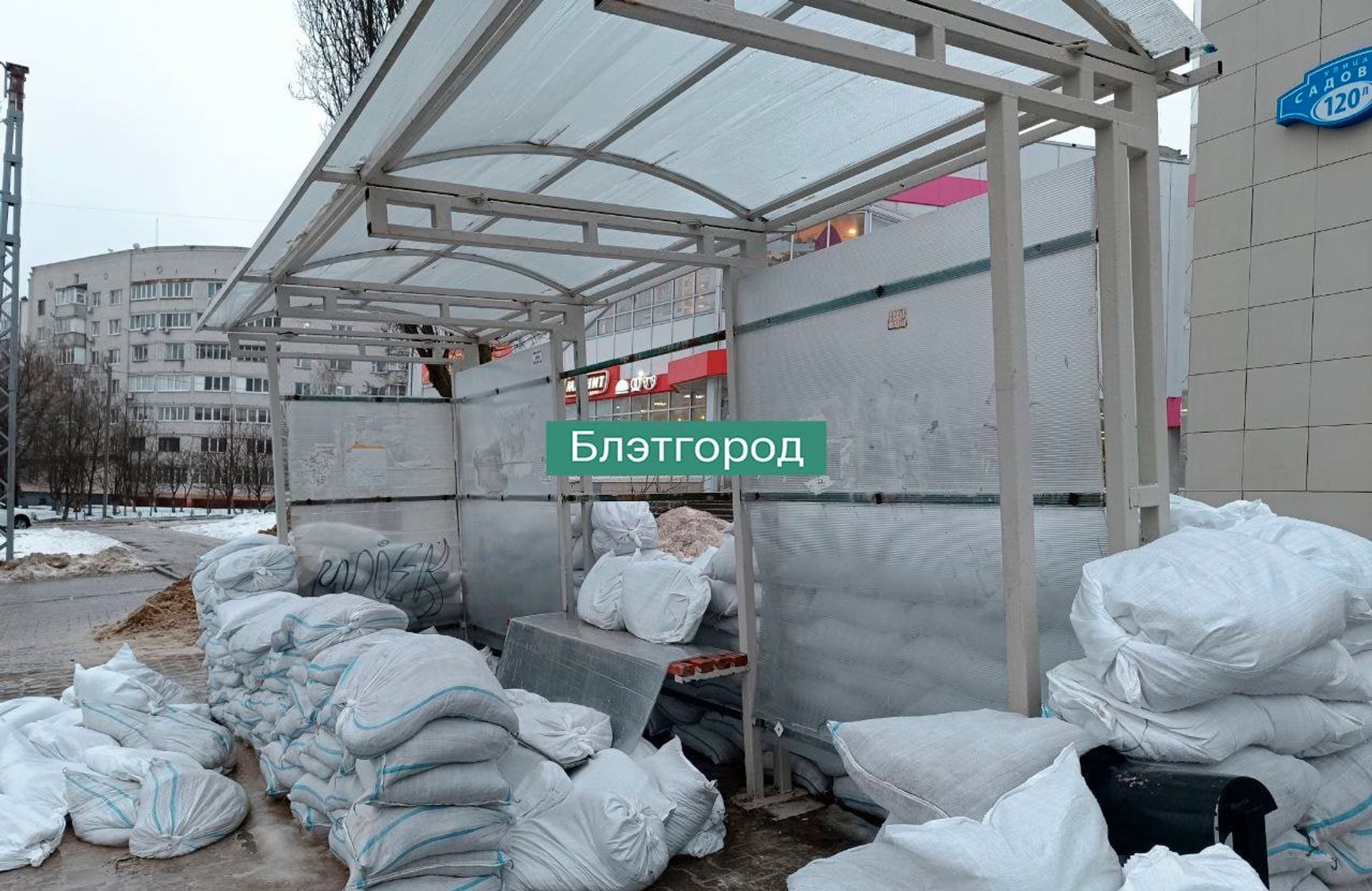 Попытка защитить остановки общественного транспорта в Белгороде не задалась. Укрепления, представляющие собой мешки с песком, начали разваливаться менее чем через неделю после установки. Теперь городские власти делают ставку на бетонные блоки.