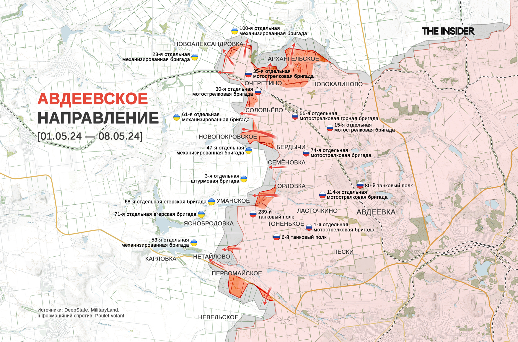 «Военкор» Юрий Котенок отмечает, что ВСУ удалось «сосредоточиться и купировать прорыв» ВС РФ в Донецкой области. В то же время российские военные постоянно получают подкрепления и продолжают штурмовые действия на основных направлениях. Котенок сообщает о продвижении ВС РФ в Нетайлово, по трассе со стороны Очеретино, а также о боях в Новоалександровке.