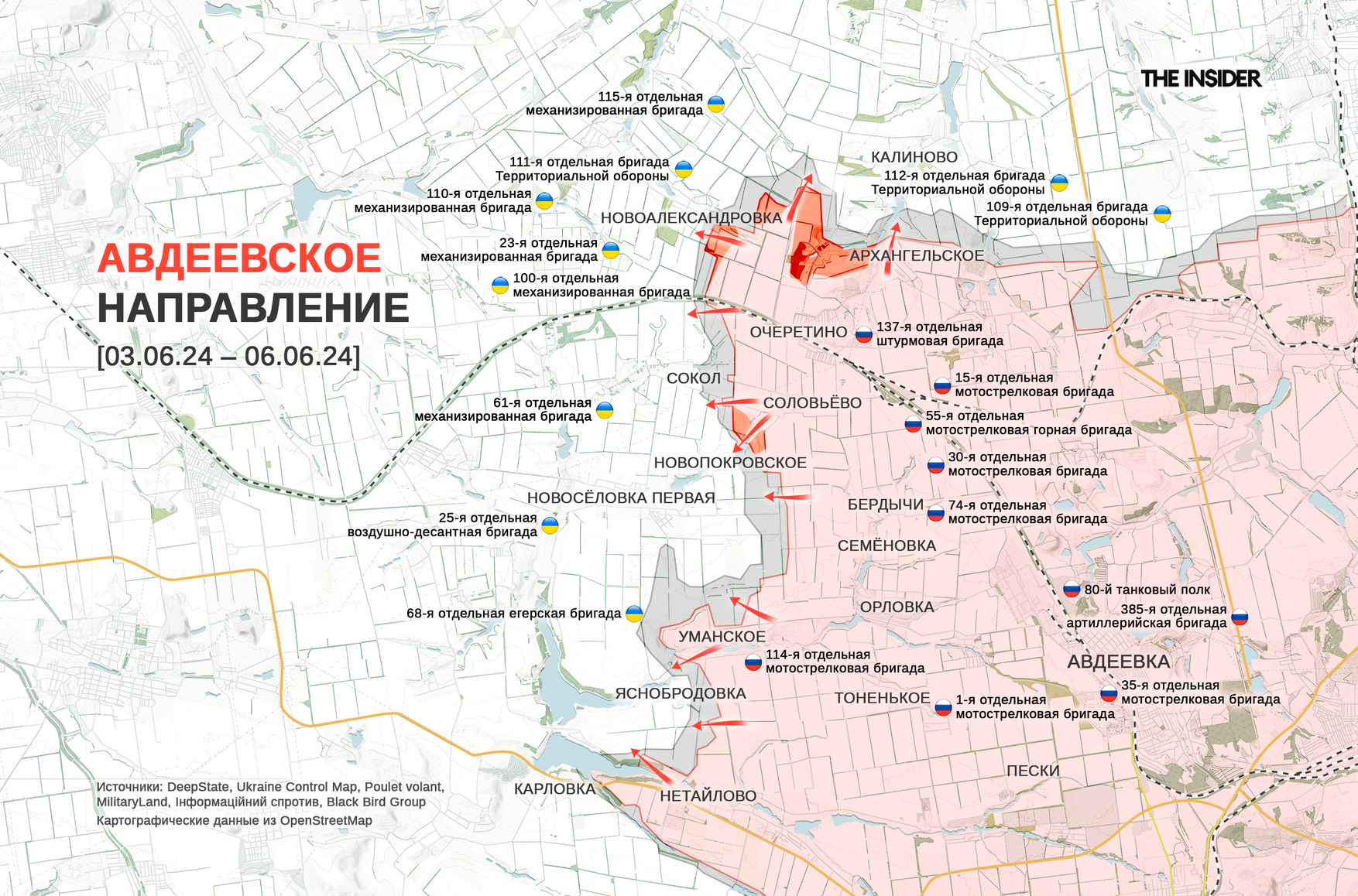 В свою очередь DeepState подтверждает успехи российских войск возле Новопокровского и Архангельского на севере авдеевского операционного района.