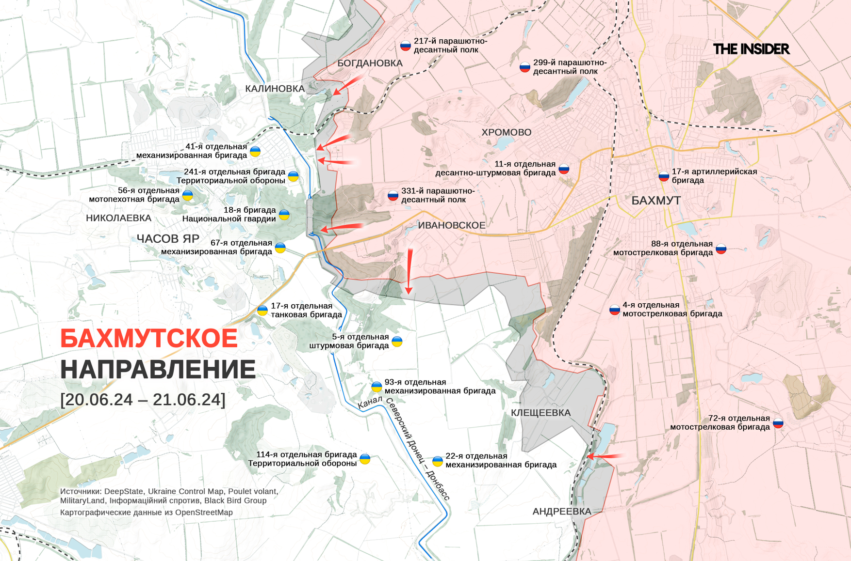 Между тем, в Telegram-канале российской 98-й гвардейской воздушно-десантной дивизии сообщается о захвате пяти домов, в том числе двух пятиэтажек, в микрорайоне «Канал» на востоке Часова Яра. Признается присутствие украинских сил в западной части микрорайона.