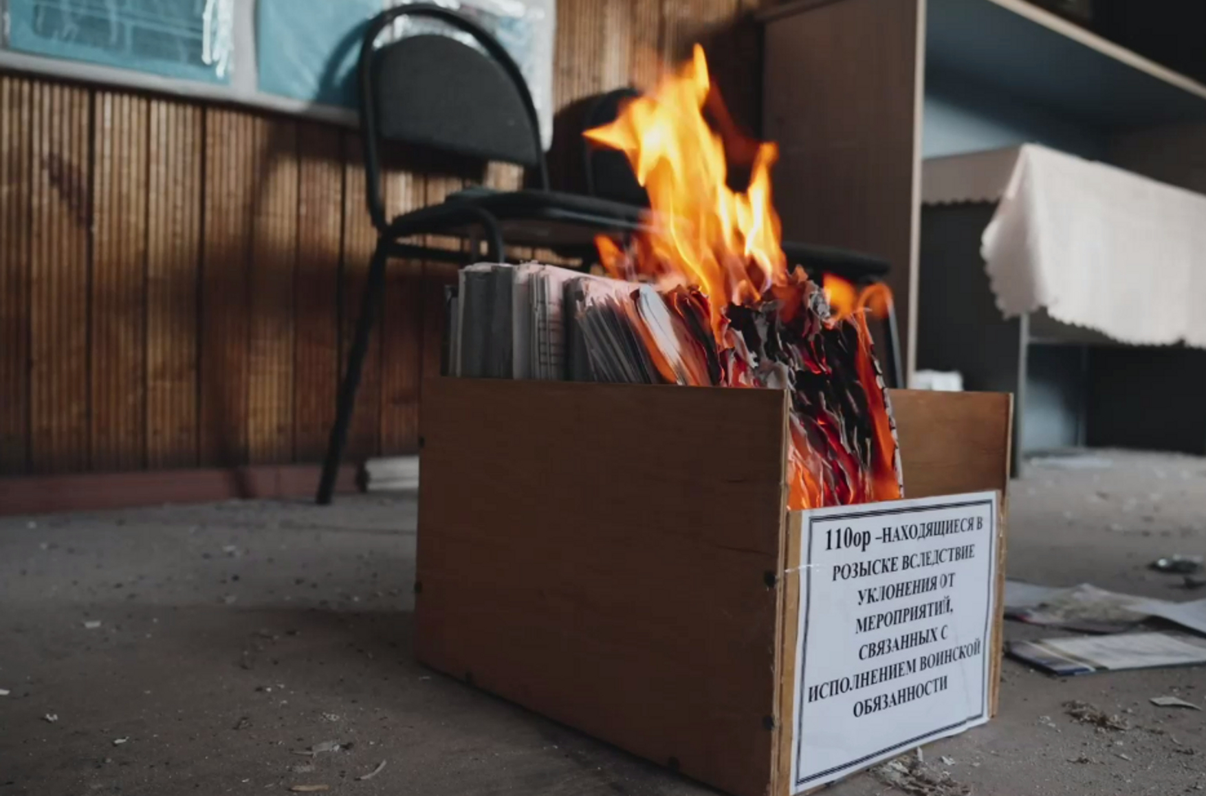 «Наша обязанность — помочь гражданам, которые не желают воевать против украинцев и умирать за Путина, так что все личные дела были уничтожены», — написал военкор. Комментируя находку, он назвал коробку с делами уклонистов «списком разумных людей».