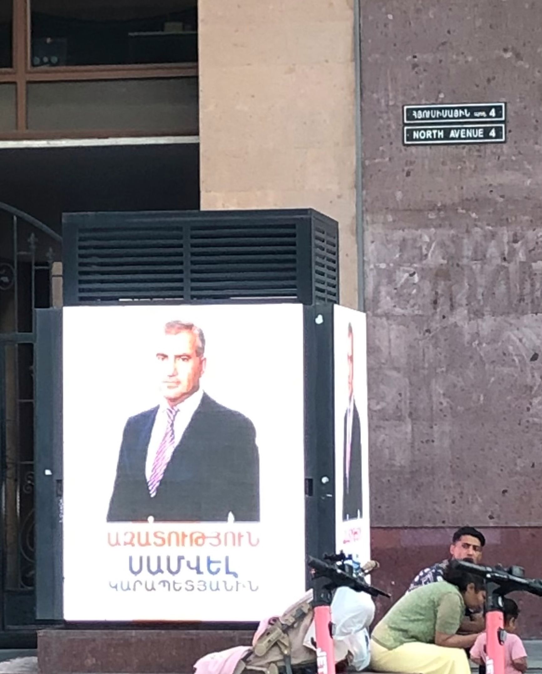 Отдельный конфликт развернулся вокруг рекламных экранов, на которых были размещены плакаты в поддержку Карапетяна. Фото бизнесмена с надписью «Свободу Самвелу Карапетяну» появились на рекламных экранах на Северном проспекте — это пешеходная улица в центре Еревана, на которой расположены торговые площади, принадлежащие группе «Ташир». Вскоре, как сообщало агентство News.am, власти потребовали отключить экраны. 25 июня на проспекте установили еще один большой экран с портретом Карапетяна, однако вскоре, как утверждает News.am, сотрудники мэрии Еревана начали его демонтировать.