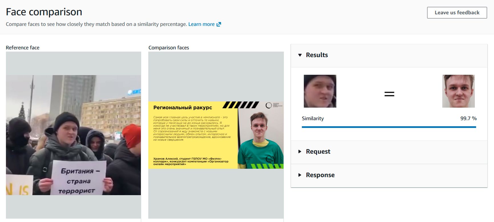 Кроме того, среди собравшихся можно заметить и студентов московских вузов. Например, рядом с Гурджиянц — студент (1, 2) Физтех-колледжа при Московском физико-техническом институте Алексей Храмов. В руках у него аналогичный плакат, но уже на русском языке: «Британия — страна террорист».