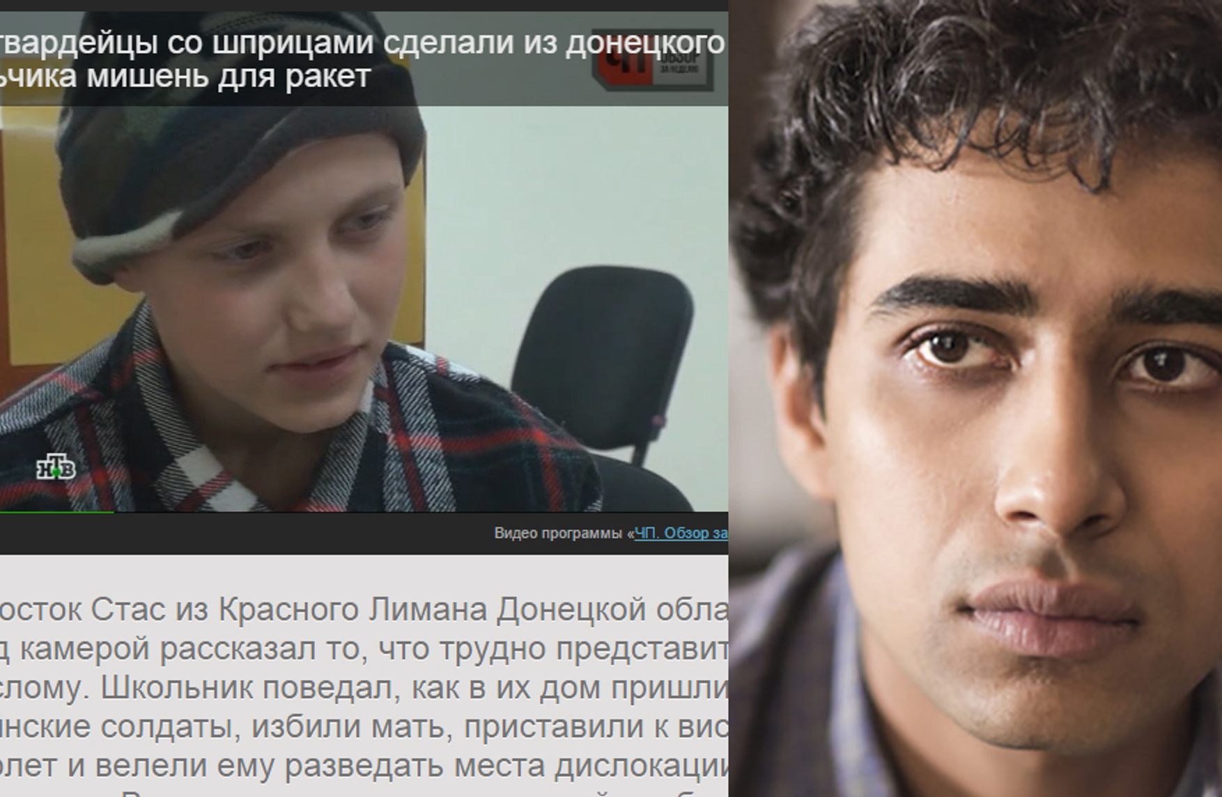 На днях российская телепропаганда отметилась новым ярким сюжетом. 2 ноября телекомпания НТВ (а вслед за ней и Life News) отметились сюжетом о том, что украинские войска якобы обкололи мальчика Стаса наркотиками, обвешали датчиками и запустили в стан сепаратистов, чтобы использовать его как наводчика-мишень, угрожая убить его родителей.