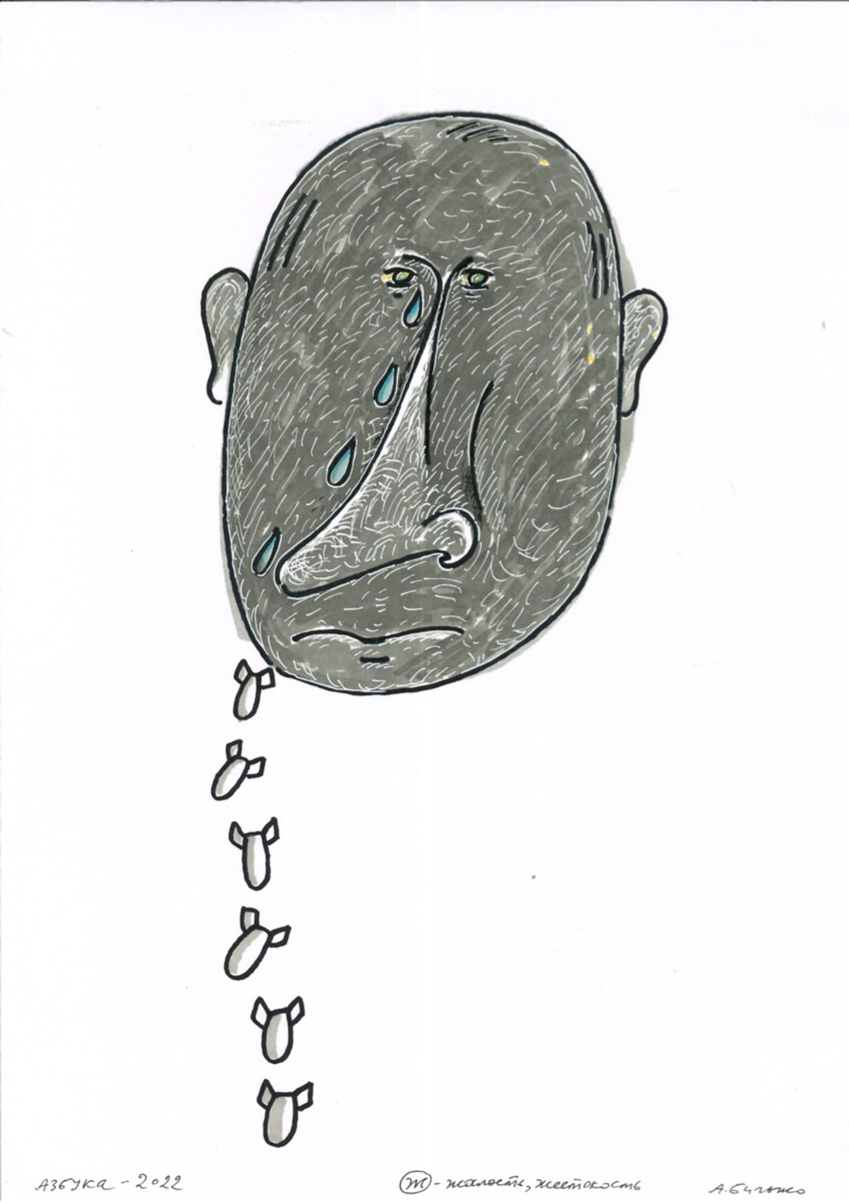 На выставке в рамках форума «Словоново» в Черногории художник Андрей Бильжо представил новый цикл «Азбука — 2022» — антивоенный и антитиранический эпос, по буквам передающий пафос происходящего. The Insider публикует первую из трех частей этого цикла.
