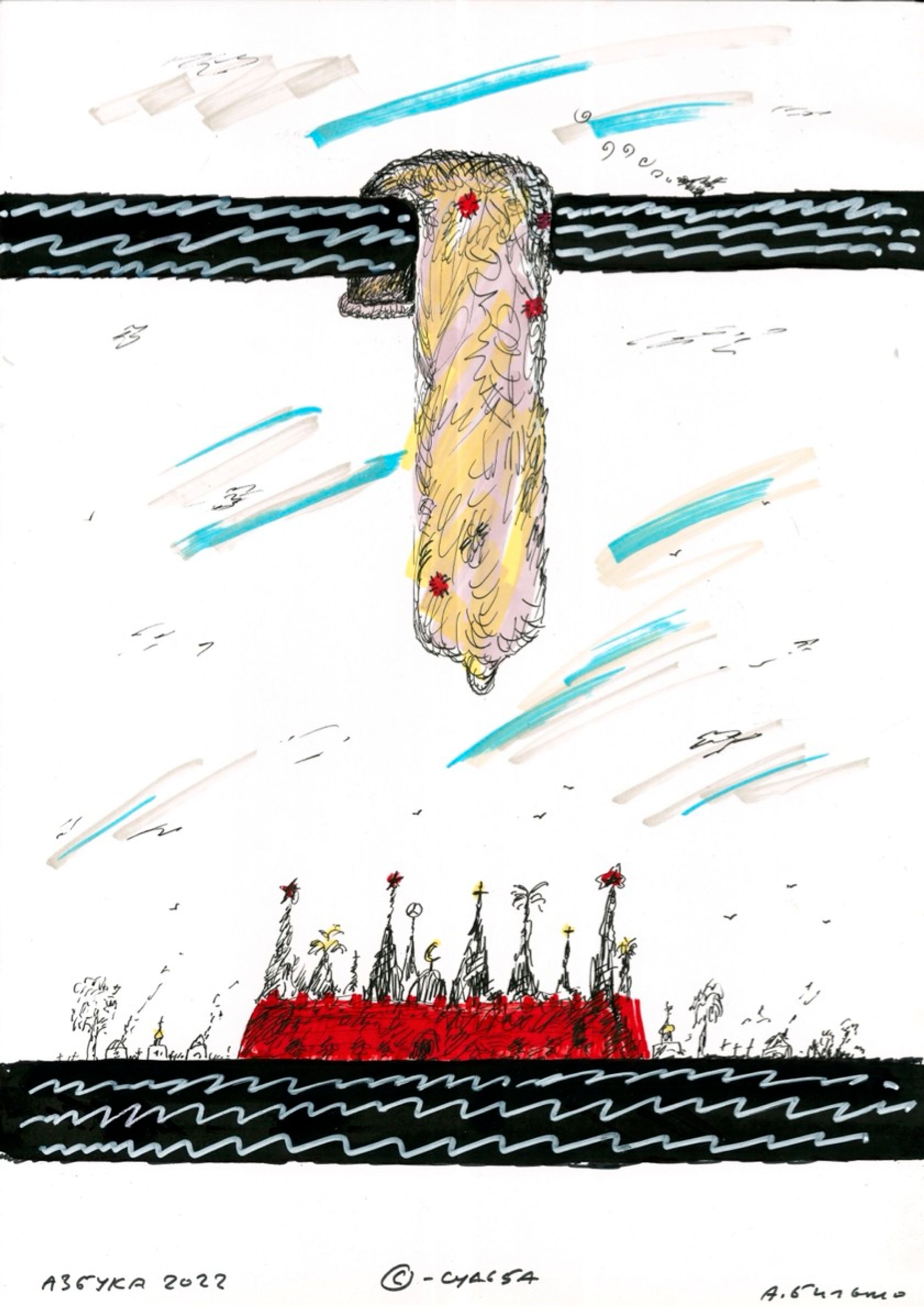 На выставке в рамках форума «СЛОВОНОВО» в Черногории художник Андрей Бильжо представил новый цикл «Азбука — 2022» — антивоенный и антитиранический эпос, по буквам передающий весь пафос происходящего. The Insider публикует продолжение цикла.