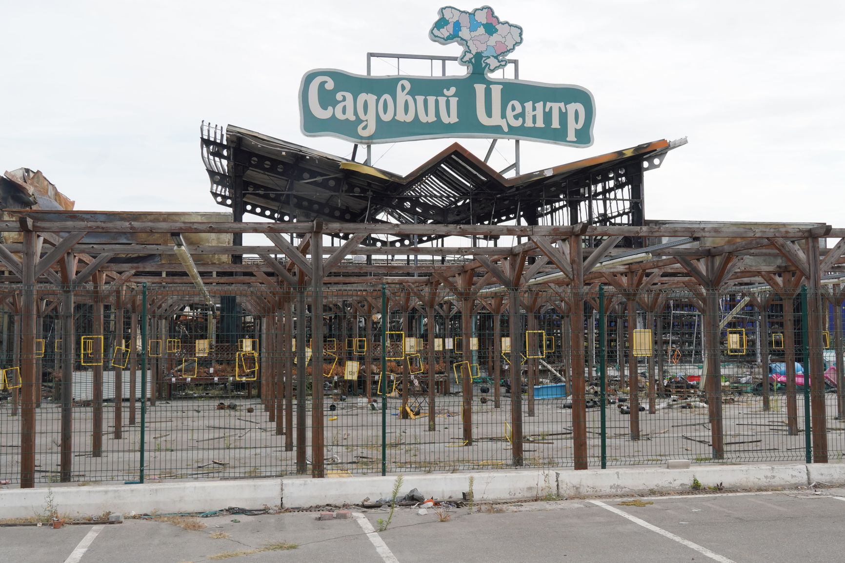Но от ракет «Туман» не спасает вообще. И обгорелые руины «Эпицентра» наглядно это подтверждают. Фасад гипермакета, хотя и сильно пострадал, но устоял, не рухнул. Даже вывеска с названием уцелела. Сейчас на ней висят украинские флаги. А вот внутри — настоящий хаос из обгорелых металлоконструкций, рухнувших листов крыши, разбросанных взрывной волной разбитых в щепки товаров. Удивительно, но кое-где еще сохранились уже выцветшие на беспощадном в этом году солнце ценники.