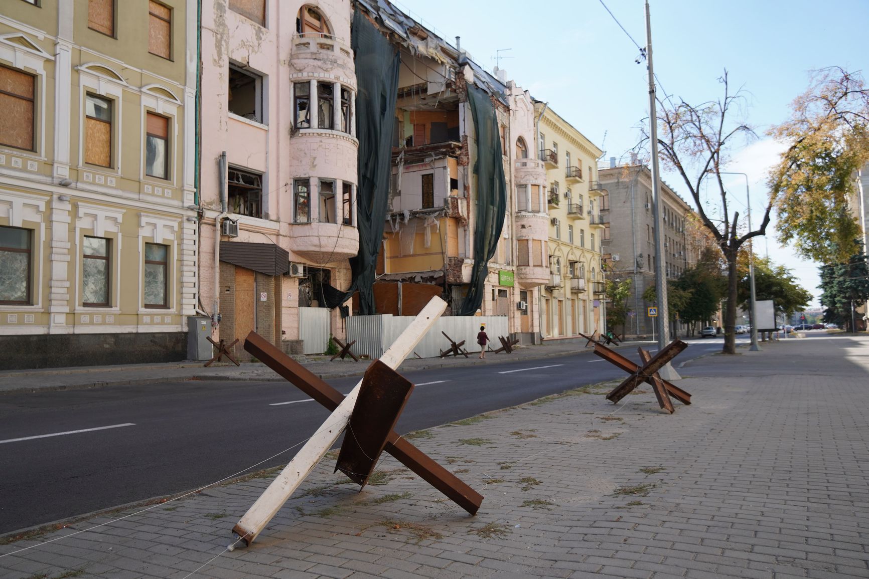 В Харькове на каждом шагу следы обстрелов — кратеры от прилетов мин и снарядов на асфальте, разрушенные ракетами исторические здания, продырявленные осколками стены. Городские службы ежедневно собирают в кучу обломки строений, в которые прилетела ракета или дрон-камикадзе, чтобы потом грузовиками вывезти их на свалку. Идешь по улице, видишь такую кучу и понимаешь — несколько часов назад в каком-то из ближайших дворов случилась трагедия: кто-то погиб или был ранен, кто-то лишился своего дома.