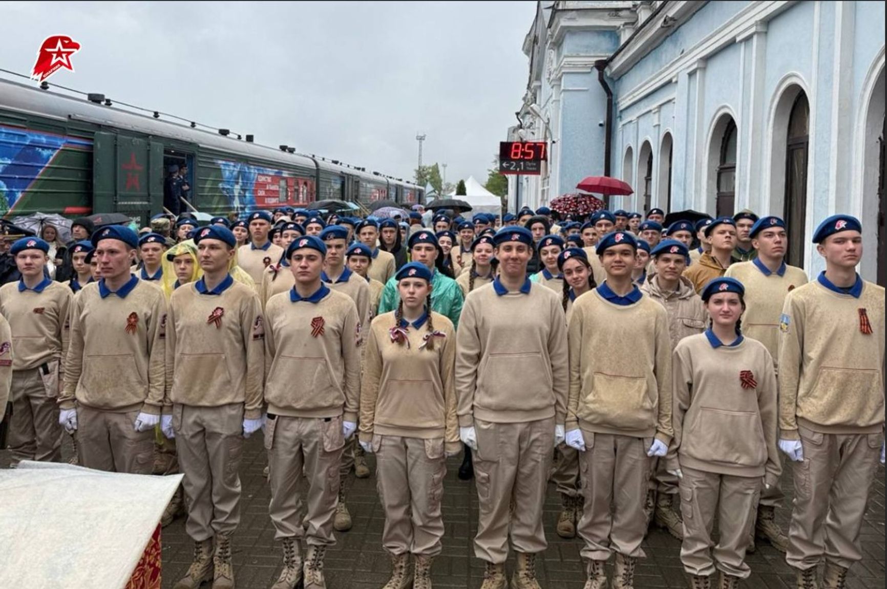 Военно-патриотический досуг предлагает и «возрождающее пионерские традиции» «Движение первых», что, согласно отчету ЕС, в действительности является обучением и перевоспитанием детей в милитаристском формате. Организация не пропускает ни одного государственного праздника. Например, в 2025 году в Донецке на фестивале в честь Дня защиты детей юные украинцы примеряли военную экипировку и знакомились с макетами оружия от Росгвардии, пока в другом районе города «Единая Россия» устроила парад военизированных детских колясок.