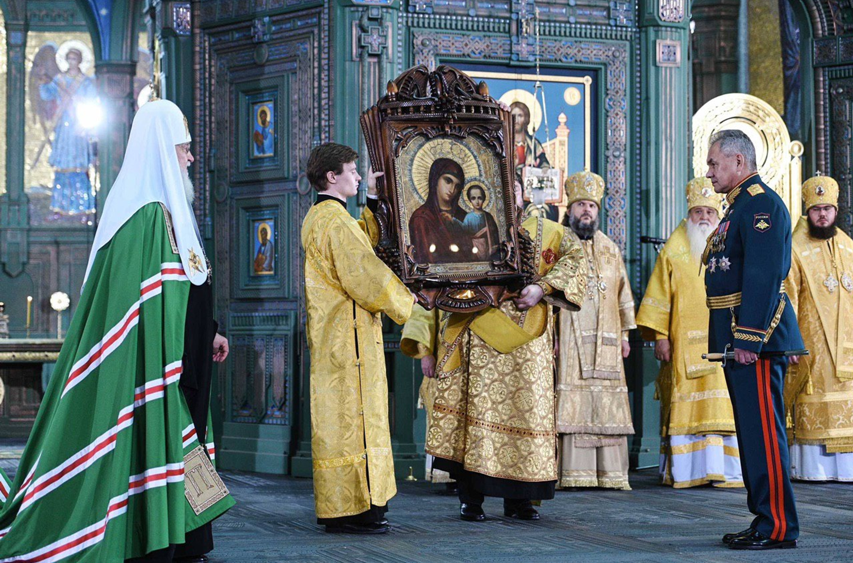Освящение главного храма Вооруженных сил прошло торжественно, динамично и очень формально. Министр обороны Сергей Шойгу стоял перед алтарем первым, рядом с позолоченным киотом. Но за всё время прямого эфира – а он продолжался три часа – камера ни разу не показала, чтобы тот крестился, или во время молитвы становился на колени, или преклонял голову в ответ на благословение патриарха. А если этого не делал министр обороны, то и прочие генералы и офицеры «просто стояли». Лишь молодые курсанты время от времени решались перекреститься.