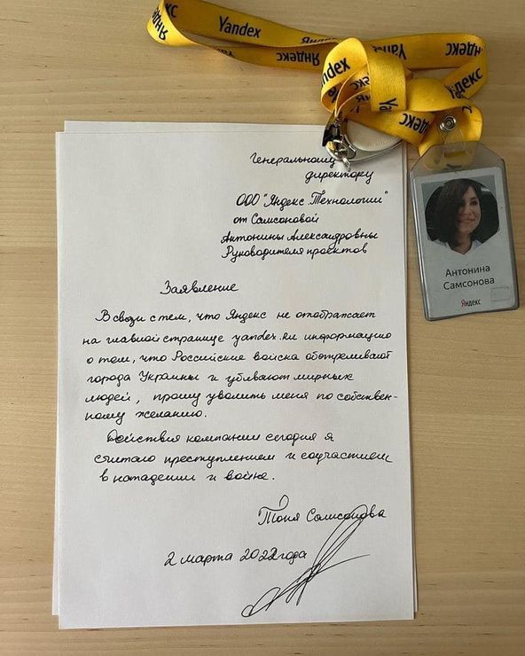 Тоня Самсонова, основательница The Question и бывшая руководительница сервиса "Яндекс.Кью", уволилась из "Яндекса" в знак протеста против того, что компания скрывает правду о войне с Украиной.