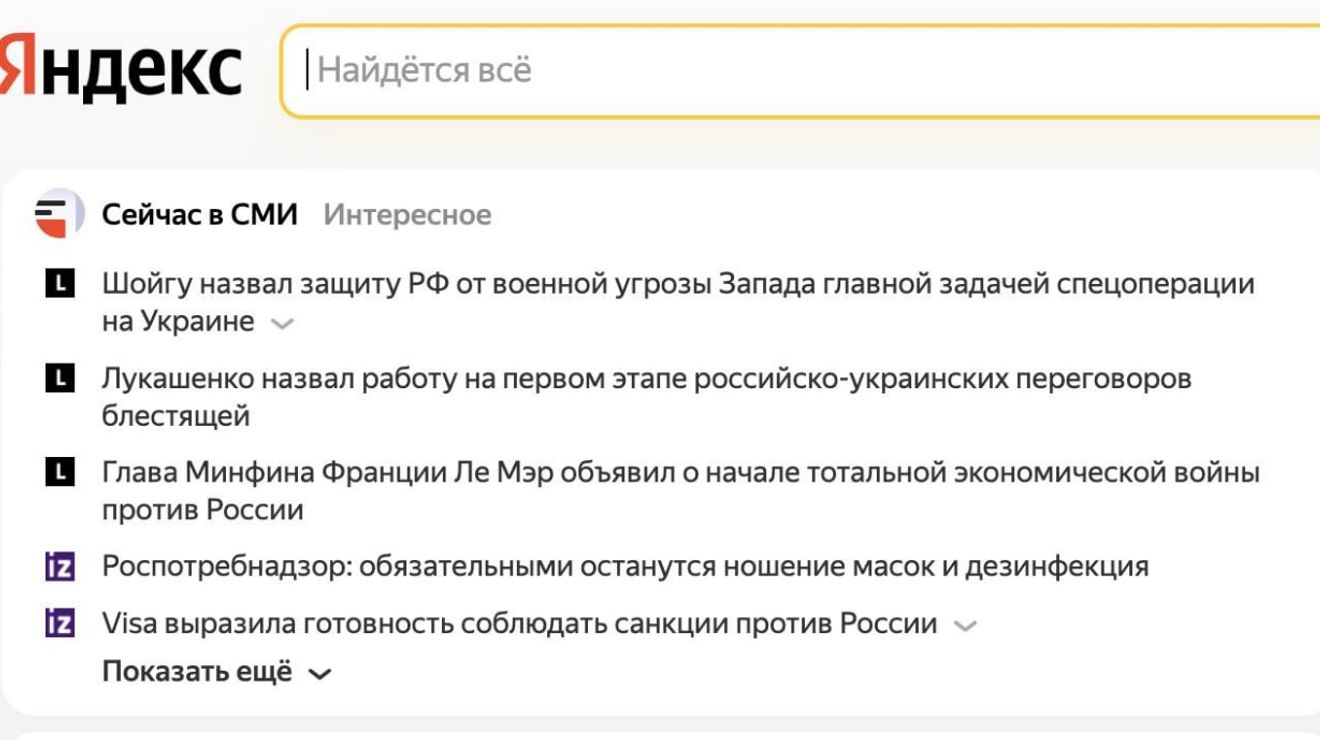 «Сегодня шестой день, когда на главной странице „Яндекса“ минимум 30 млн российских пользователей видят, что никакой войны нет».